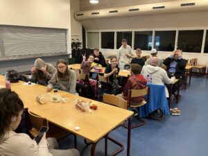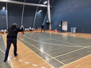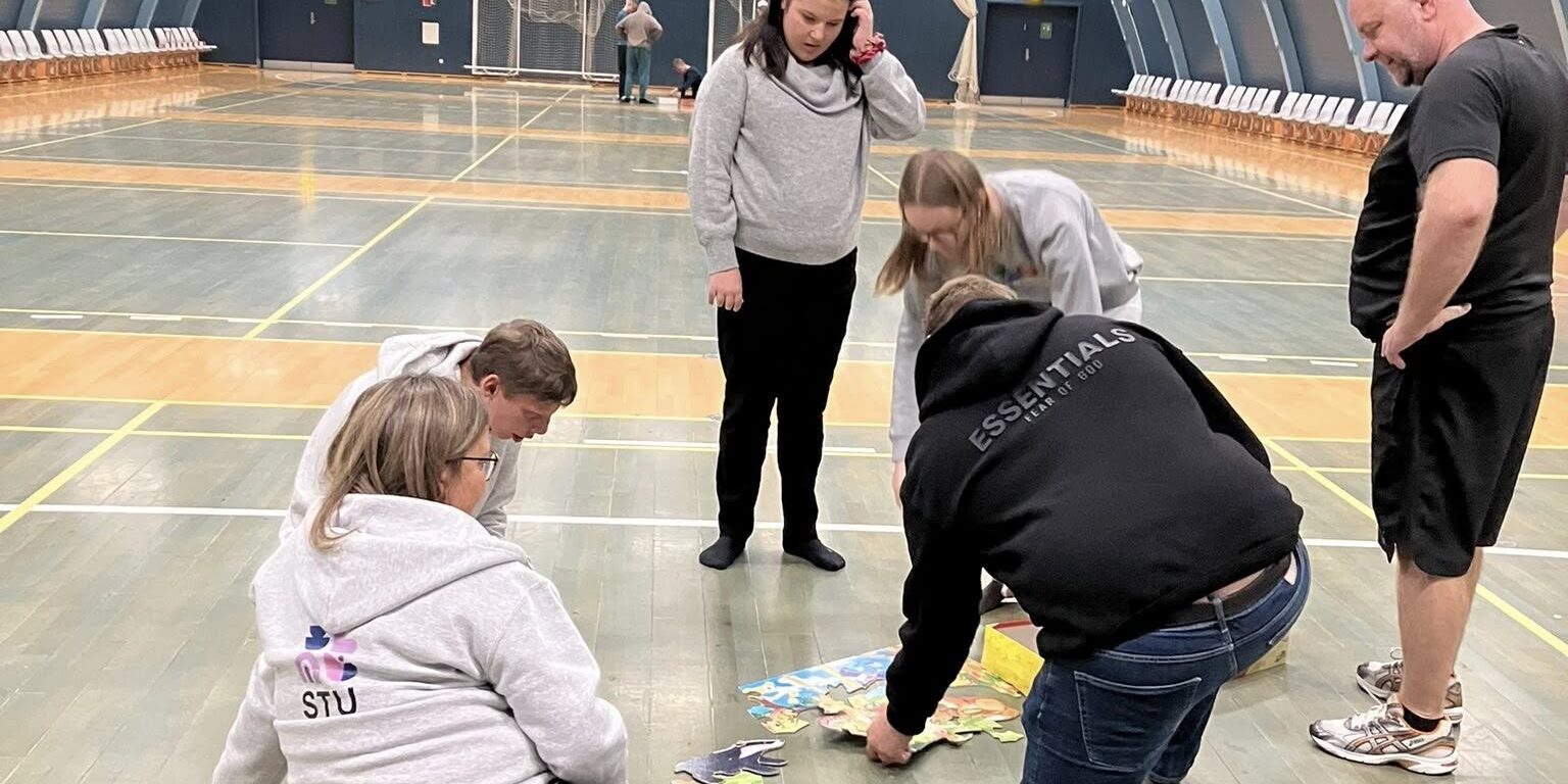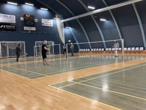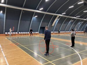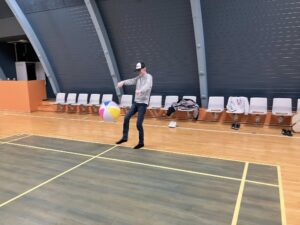 I dag bestod opvarmningen også af samarbejdsøvelser, hvorefter boldspil og batminton fik alle på gulvet.