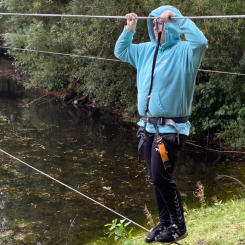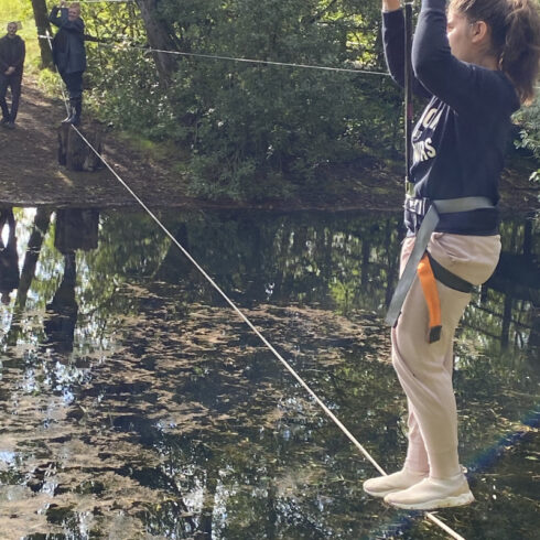 Endnu en gang blev der rykket på grænser. Bare det at få seletøjet på og komme op og stå på snoren og få fornemmelsen af balance, gå de første skridt ud på snore, jorden bliver til vand, nå over eller gå tilbage igen, det er så sejt. Det er super godt gået.