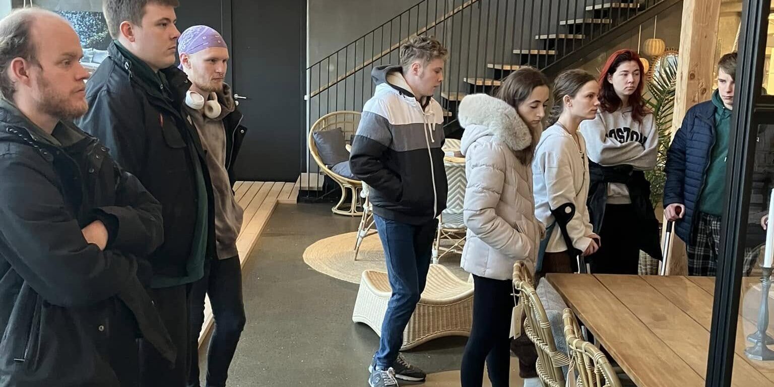 jan82025UncategorizedÅrets første virksomhedsbesøg gik i dag til SIKA design. Meget spændene at se deres store lager og showroom fyldt med smukke møbler – bl.a. brugt som rekvisitter i “Badehotellet” – drengene sidder i samme stol som Grosserer Madsen bruger i serien
